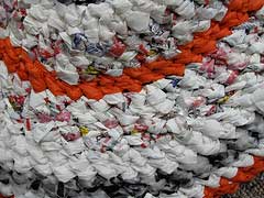 How cool is this? I was sitting here taking a break from cleaning house and checked my e-mail for “Living on a Dime”. Right there were instructions for making a rag rug; right next to my computer in my crafts basket is a rag rug I’m currently working on! I’ve been making rag rugs for years. They come in handy for letting my dogs sleep on them. I make my rugs out of strips of cut up clothes, sheets, towels, etc. I also use my scrap yarns (I’m a crocheter). I also throw them across my dog’s bed and even across our couch when my dogs want to lie there. Of course, I also use them for rugs in my kitchen, bedroom, bath; they make a great bath mat, too. Just throw them in the washer and dryer and then start all over again.